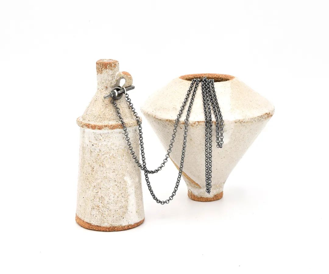 Refractory stoneware with chamotte, enamel, oxidized 925 silver