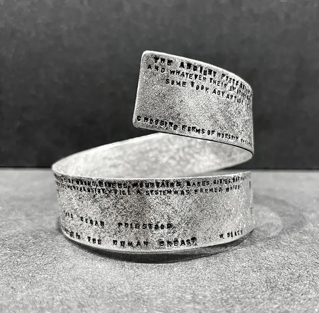 這個展覽完全取材于 RAM 不斷增長的收藏,在慶祝當代珠寶的同時強調從新的角度(有時是字面意思)考慮它。例如,有些胸針的展示方式會將注意力集中在背面而不是正面。雖然佩戴一件衣服時背面可能是看不見的,但藝術家可能仍然會利用它是佩戴者與之互動的一面這一事實——延續正面的元素,添加銘文,或者至少,深思熟慮地融入它進入整體構圖。