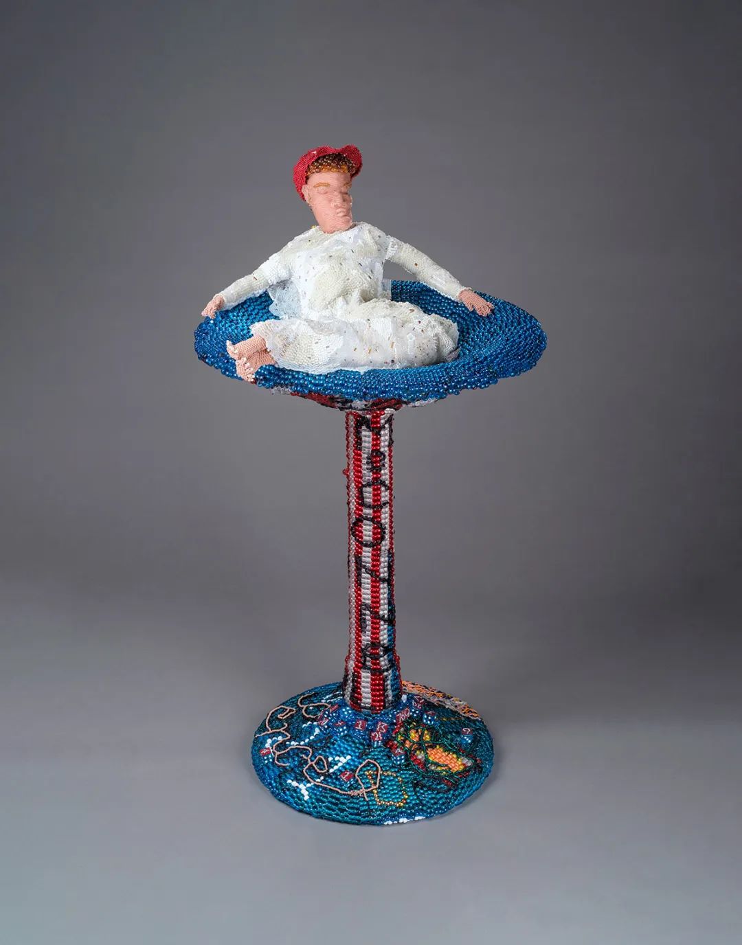 Glass beads, mixed media, wire, thread, armature, woven glass beads