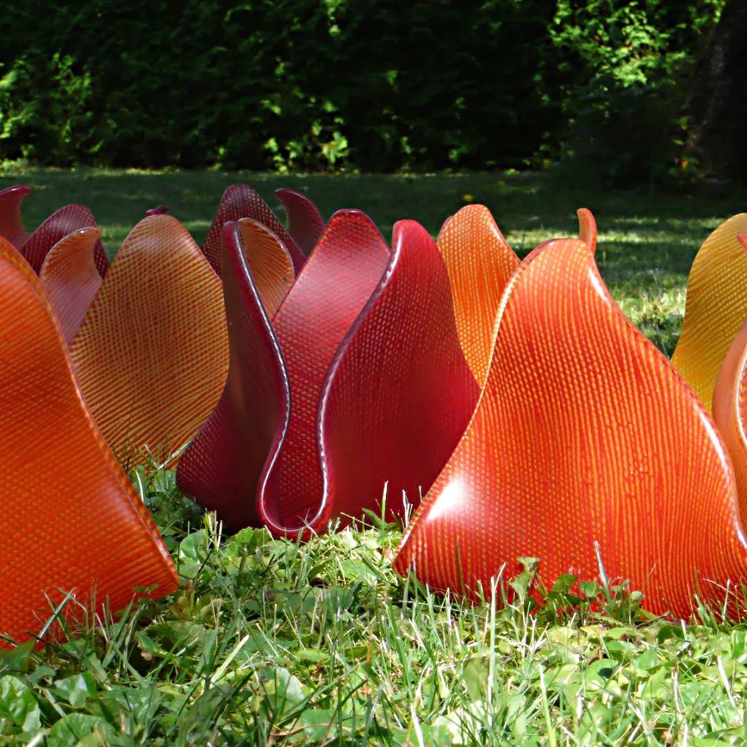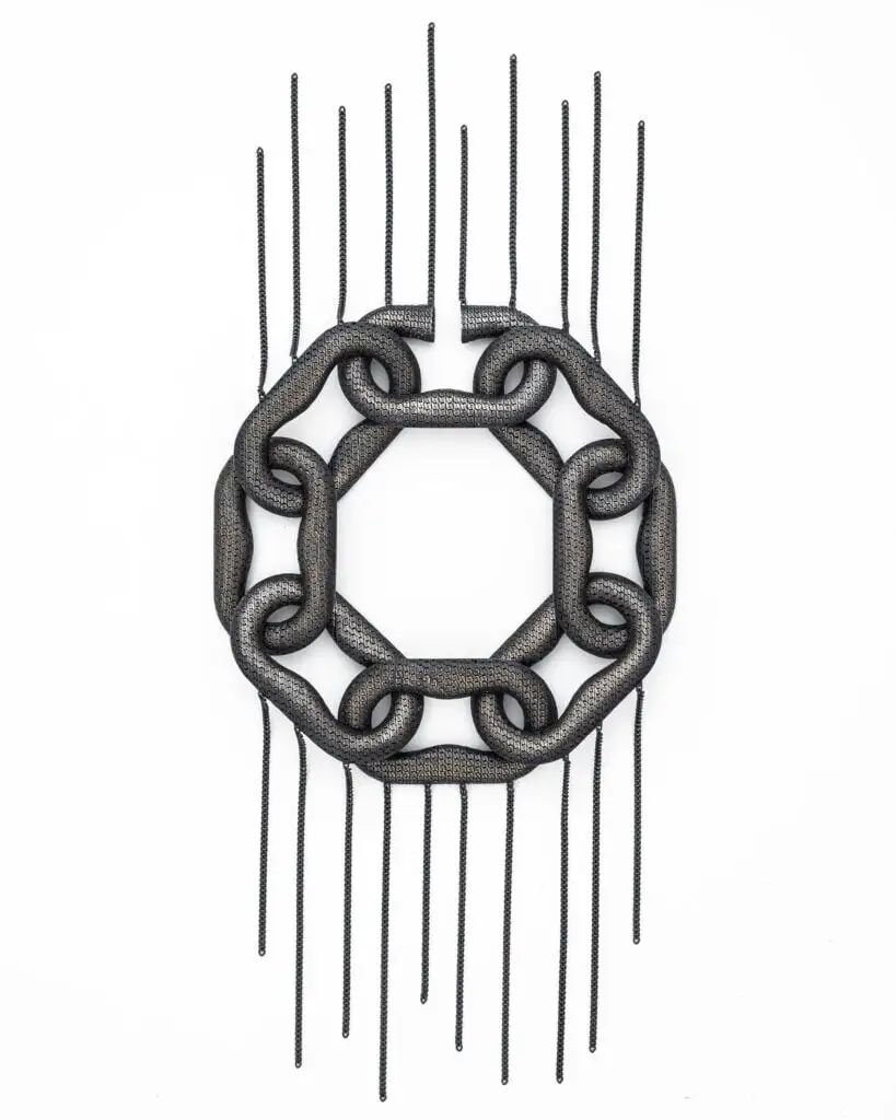 該系列中的作品均采用了藝術(shù)家的標志性材料,Seufert 的 PVC 和 Svensson 的 Steel。雖然兩位藝術(shù)家的創(chuàng)作都植根于非貴重材料并采用幾何形式,但他們各自的靈感卻有所不同。