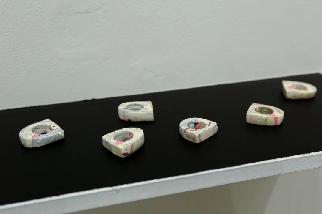 我尋找這些獨特的瞬間,并在創(chuàng)作過程中將其表達出來。我嘗試使用濕涂層,逐漸堆疊成新的表面,它們之間不可預(yù)知的相互交疊著。這種直接且即時的創(chuàng)作方法使我能夠詮釋我從偶然形成的墻壁表面中汲取的靈感。在前期不斷增加與后來逐漸消減這些涂層的過程中,材料經(jīng)歷了特定的條件,塑造了物件的特性。在創(chuàng)作過程中不斷出現(xiàn)的問題是,當(dāng)層數(shù)減少時,作品會顯露出什么。
