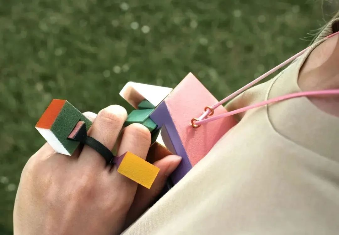 對于留守兒童,有限性意味著物質和實體的存在,而無限性意味著創造、想象和精神世界。通過結合這些兒童的繪畫,我重新使用了我的“語言”來繪制新聞,然后將其轉化為具有榫卯結構的圖形塊,使其可以以無限的方式組合。因此,我試圖在材料的語言中尋找無限的可能性,打破傳統珠寶的常規界限,給人們帶來無盡的想象。