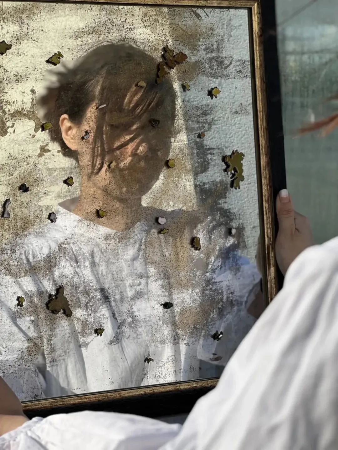 當我抬頭看著整個作品時,它真的像是一片時間的碎片,帶著氣味、光芒,甚至聲音在我面前凝結。