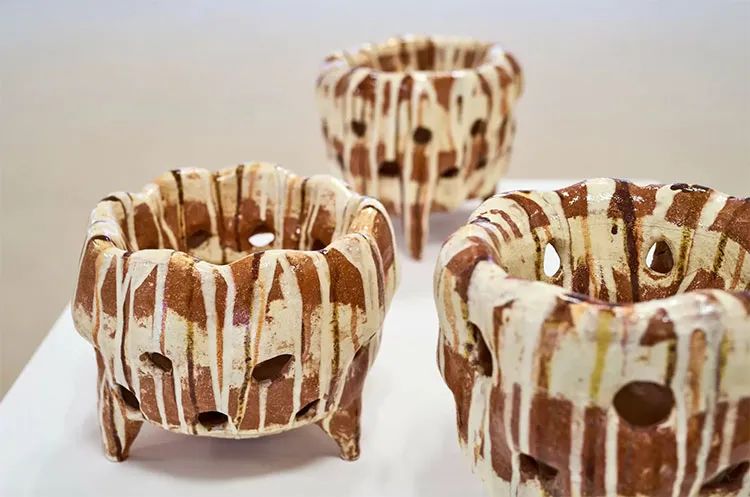 Marit Tingleff 的作品富有表現力,具有強烈的裝飾性特征和起伏的有機線條。重力決定了釉底在表面流動的方向,因為在涂抹過程中盤子和瓷磚會被抬起。重復節(jié)奏的垂直線條表明這種動作是沖動的,但技術嫻熟。她對彩色釉料的繪畫應用參考了自然、陸地和海景,盡管上釉和燒制的過程很復雜,但她仍然保持著令人難以置信的自發(fā)感,平衡了明暗、圖案和空白區(qū)域,同時嘗試了不同的標記制作方式。