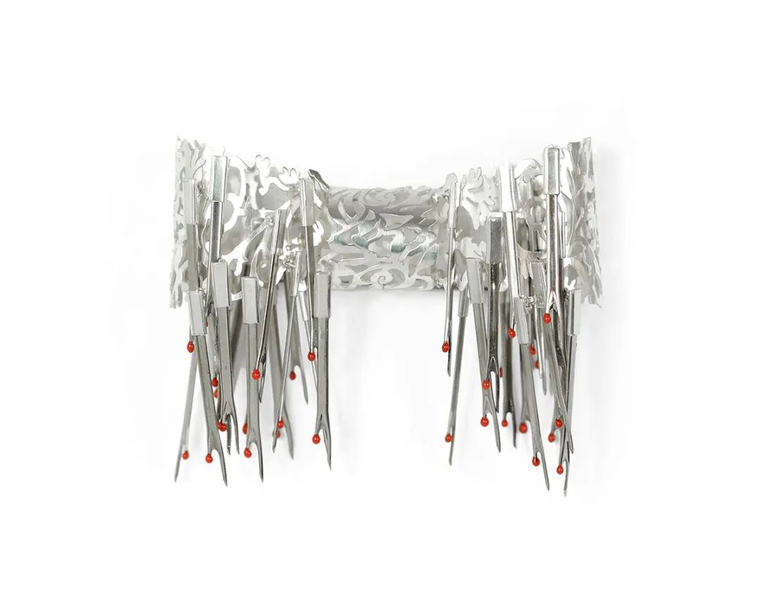 Ebendorf 的作品融合了通過傳統(tǒng)的金銀制作培訓獲得的卓越工藝,以及對現有物品和其他替代材料(如丙烯酸和 ColorCore)的創(chuàng)造性使用。