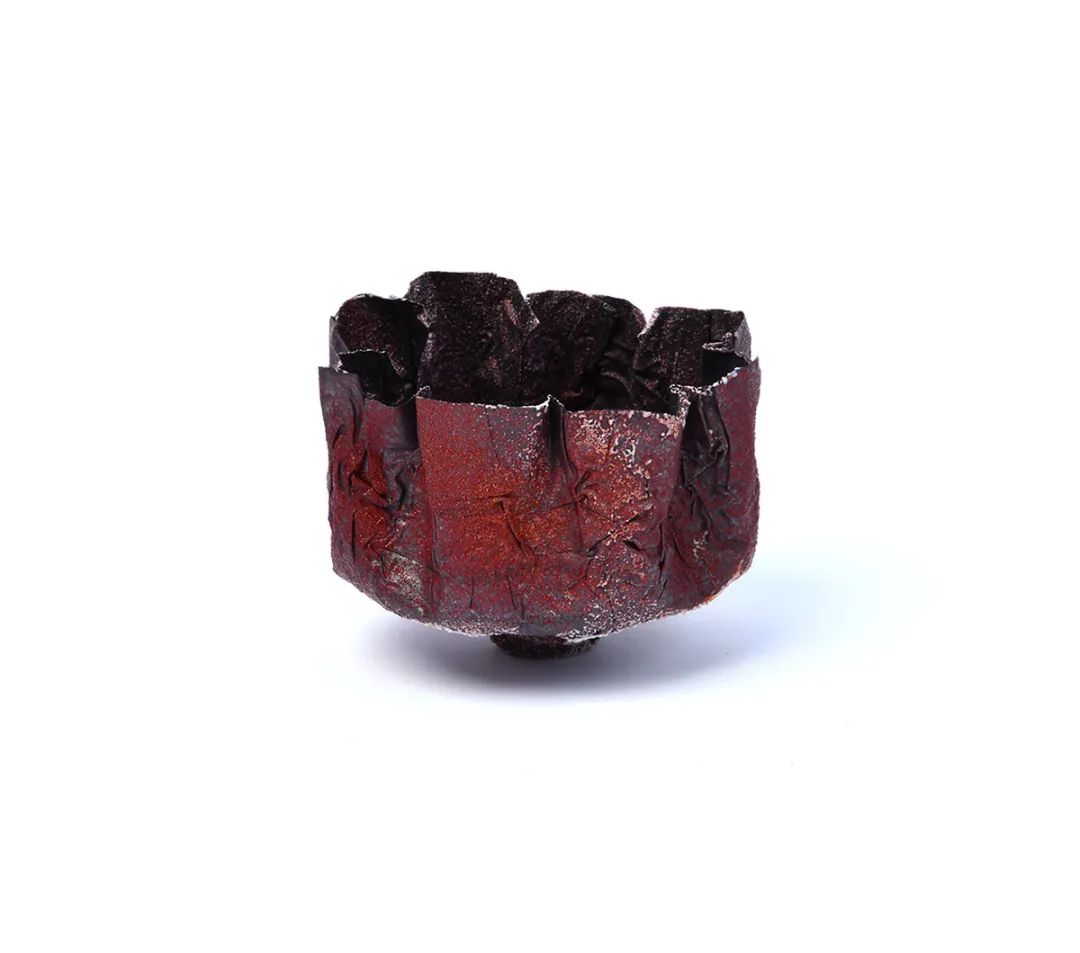 她的容器是對形狀、空間和空虛之間相互作用的令人回味的反思——每一件獨特的作品都是手工鍛造的,證明了迪特曼對金屬的精通和永恒的技巧。有些看起來好像浸入火山熔巖后仍處于熔融狀態(tài),或者因漏油而滑溜溜的。另一些看起來好像巧克力櫻桃的皺巴巴的紅色箔片被巧妙地打開,并在珍貴的糖果從包裝紙中取出后完好無損。在所有情況下,精致的表面都掩蓋了堅固的金屬形狀。雖然大部分都是空氣,但就連空氣本身也不得不承認它被精心包裹著。