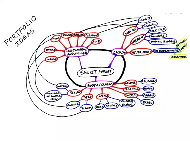 Research之后,就可以開始進行sketch。sketch可以是creative collage(創意拼貼畫),材料,繪畫(任何可以給你帶來靈感的)。