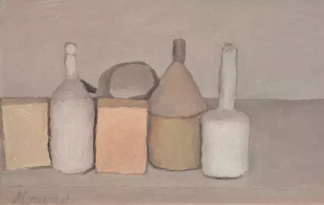 喬治·莫蘭迪(1890-1964,Giorgio Morandi )生于意大利波洛尼亞,是意大利著名的版畫家、油畫家。莫蘭迪一生的創(chuàng)作題材都是在畫著幾只瓶子和波羅納郊外的風(fēng)景。他花了一輩子的時(shí)間研究這些瓶子和周圍生活的景色,單就創(chuàng)作的油畫就有1264張,而這還不包括素描、水彩和版畫等其他形式。當(dāng)人們問及他的創(chuàng)作情況時(shí),莫蘭迪說:“那種由看得見的世界,也就是形體的世界所喚起的感覺和圖像,是很難,甚至根本無法用定義和詞匯來描述。事實(shí)上,它與日常生活中所感受的完全不一樣,因?yàn)槟莻€(gè)視覺所及的世界是由形體、顏色、空間和光線所決定的……我相信,沒有任何東西比我們所看到的世界更抽象,更不真實(shí)的了。”