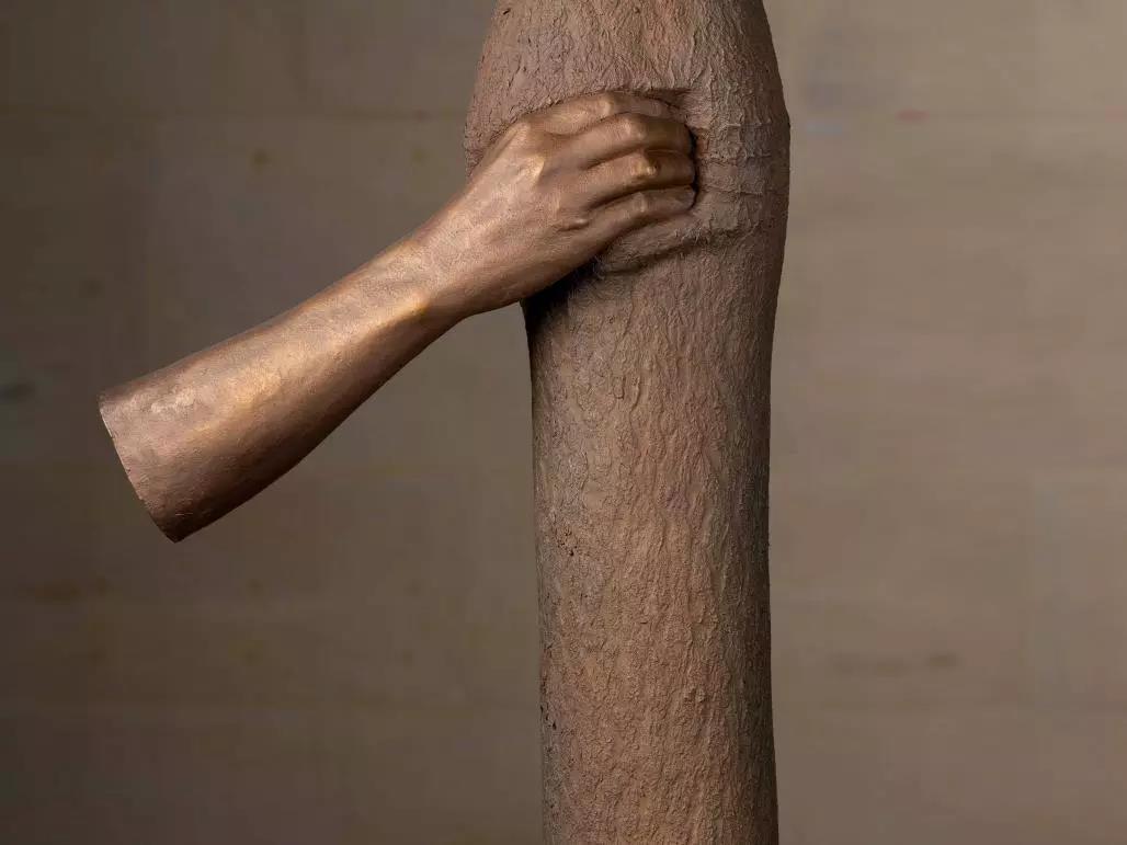 在新雕塑《等效》中,Penone用石膏模型制作了樹木的部分,然后用青銅澆鑄,并逐塊豎立起了一棵人造樹。從根部出現了一種擬人化的樹皮螺旋,成為了一個形象,面對著它的植物對應物。Penone認為這種融合是gesti vegetali(植物般的手勢)。在他的手中,人體從樹中解放出來,而樹又揭示了人體的內在特質。利用雕塑的媒介和技術,他釋放了萬物的生命,從而將自然的本質與人類行為的感覺結合了起來。