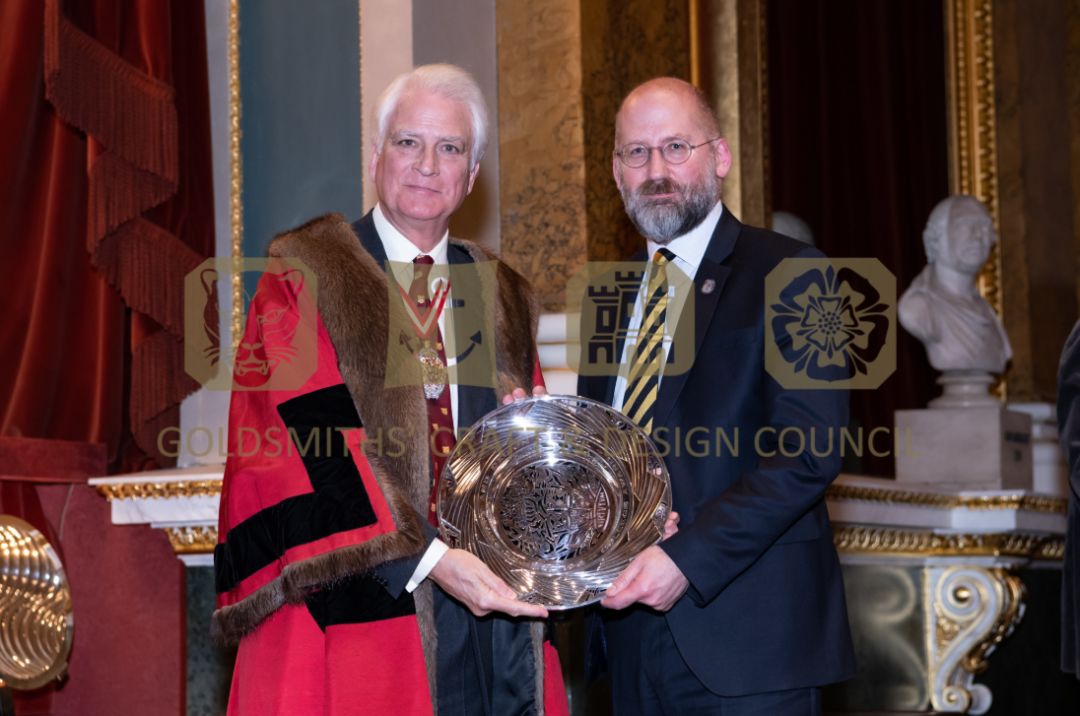 英國金匠精工藝與設(shè)計委員會GCDC為BCU珠寶學(xué)院副院長兼課程負責(zé)人Jeremy Hobbins頒發(fā)獎?wù)?/p>