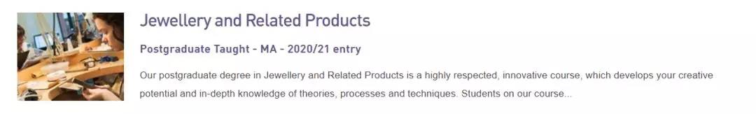 這個是珠寶學(xué)院提供研究生專業(yè)——Jewellery, Silversmithing and Related Products(首飾、銀匠與相關(guān)產(chǎn)品),學(xué)時1年的研究生課程。目前該專業(yè)重點幫助學(xué)生發(fā)展設(shè)計想法,致力于培養(yǎng)獨立首飾藝術(shù)家或設(shè)計師。通常在本科階段學(xué)習(xí)Jewellery and Object該專業(yè)的學(xué)生會繼續(xù)申請研究生課程的學(xué)生。但是相對畢業(yè)于HND和DFI的學(xué)生會選擇工作,因為他們擅長的領(lǐng)域是較為商業(yè)向的設(shè)計和工藝技巧。