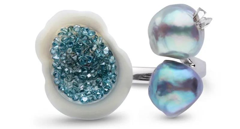 受到天然晶洞的啟發,Hisano開始嘗試切割出中空的淡水珍珠,并將寶石鑲嵌在內。極具創新和挑釁的設計融合了工藝和藝術性,向世界展示著珍珠的獨特之處。