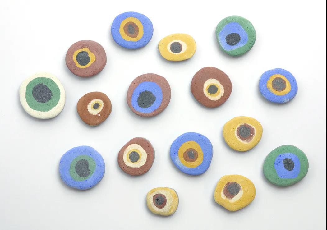 steel, powder coat, cement, paint, sterling silver, nickel silver, and resin
