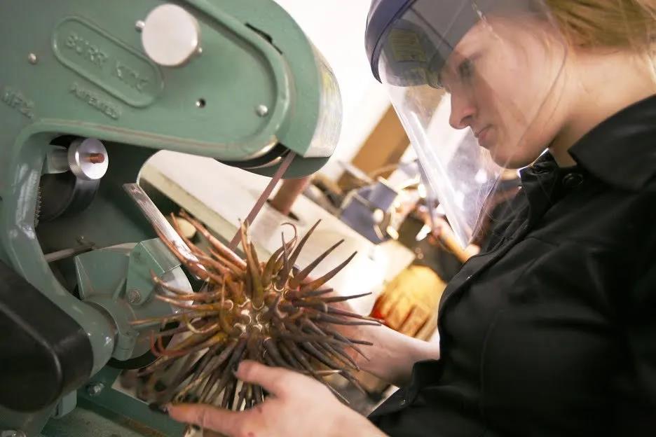 每學期,學院也會有針對首飾技術的選修課,例如黃金鑲嵌、電鑄、金屬染色、3D建模等等,技術課都是本科和碩士在一起上的。相對于國內,RISD的首飾技術課教得更詳細,工作室所提供的工具也更多。不過從課程量和種類上來說,國內會更多一些,因為還包含有很多傳統工藝的課程。