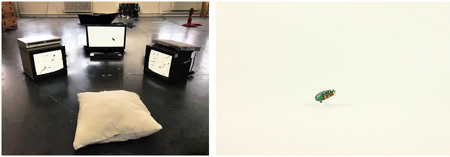 “ 同時(shí)他選擇了飛紙飛機(jī)這樣一個(gè)童真且簡(jiǎn)單的行為,更容易和觀眾產(chǎn)生共鳴,這也影響了我之后有一些作品是通過(guò)玩具來(lái)實(shí)現(xiàn)的。”