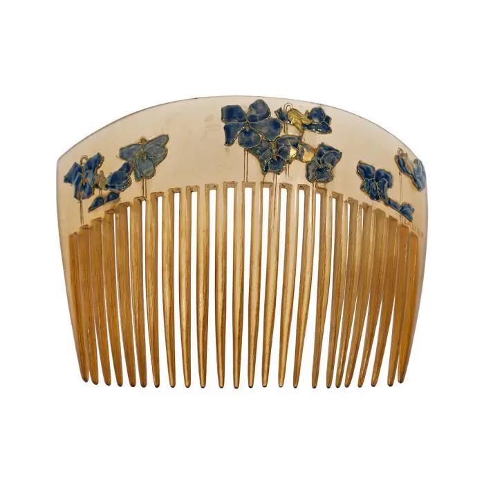 新藝術運動時期的首飾藝術風格受日本藝術的影響更直接地體現為對西方傳統首飾類型與形制的突破。除了項鏈、手鐲、戒指、胸針等西方傳統首飾的常見形制之外,“新藝術”時期最流行的首飾還有形制豐富多彩的梳子、發簪。