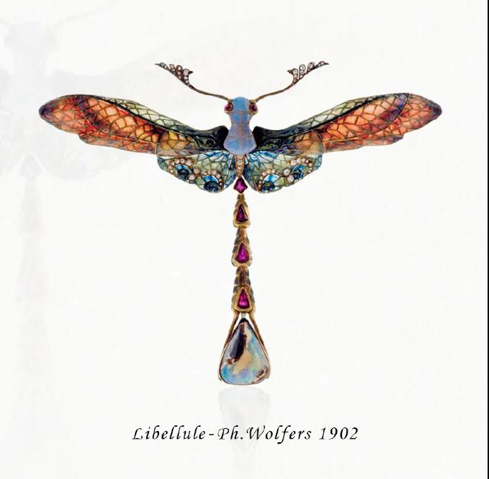 1900年,珠寶巨匠Philippe Wolfers在拉于勒普的家庭花園里看到追逐陽光飛舞的蜻蜓,蜻蜓為上古生靈,象征生命的永恒,Philippe Wolfers捕捉自然主義靈感,將蜻蜓優(yōu)雅靈動的形態(tài)融入珠寶設計當中,創(chuàng)作出代表自然與藝術永恒之美的“蜻蜓珠寶”。此后,蜻蜓元素便成為 Wolfers自然美學寶庫中,最具品牌標識的藝術靈感。