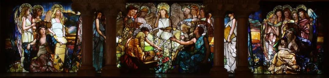 19世紀末20世紀初,美國應用美術的新藝術領袖Louis Comfort Tiffany使美國染色玻璃工業(yè)發(fā)生革命巨變并雄踞玻璃制品業(yè)統(tǒng)治地位。數(shù)以千計的教堂都以精美的蒂梵尼玻璃作裝飾,Tiffany這個名稱也就成為了玻璃花窗藝術的代名詞,其染色玻璃作品中許多成為了有圖騰意義的美國文化遺產(chǎn)。