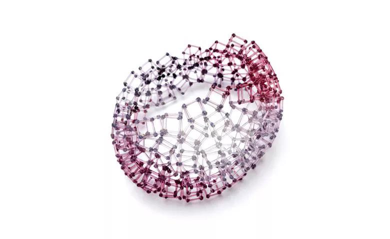 Mommersteeg設計的形狀變得更加有機和自由,它們的電線結構致密或松開,并在身體周圍流動。她所制作的別針似乎長得像細胞,手鐲讓人聯想到堆積如山的水晶與凝塊熔巖。