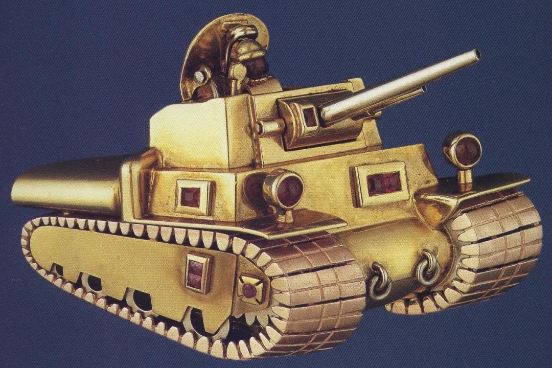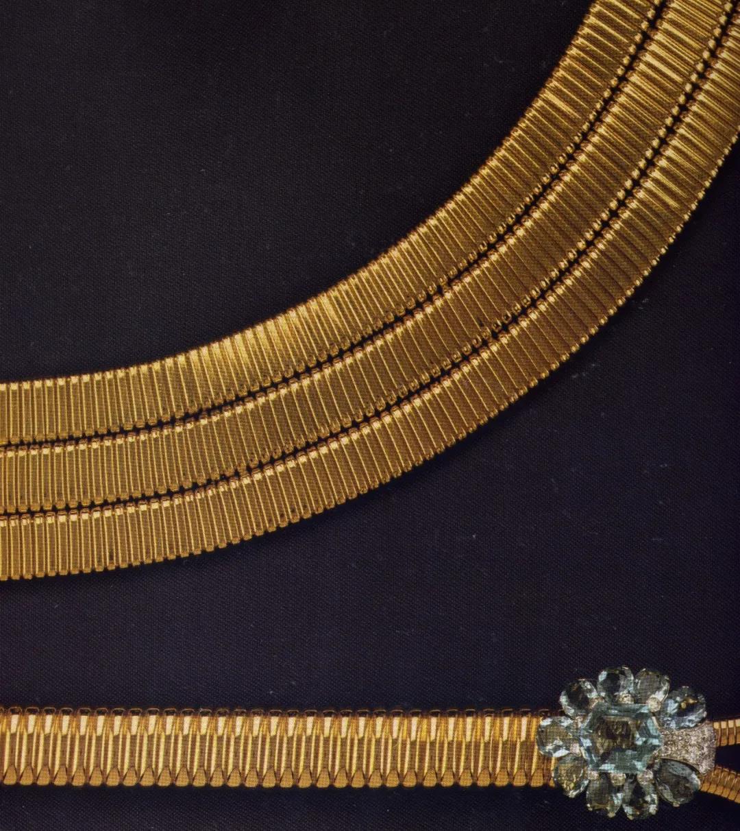 Gold, platinum, diamond, ruby, emerald, amethyst and coral