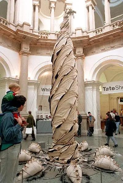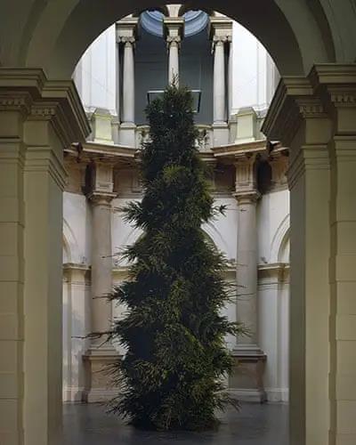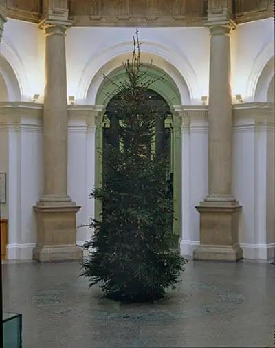 伊朗藝術家 Shirazeh Houshiary在1993年帶來了經典作品,她將整棵圣誕樹倒掛,把平日埋在地下的根莖部分裸露在外面,并用金箔裝飾,十分奪目。Houshiary希望人們認識到松樹是最古老的物種之一,明白根部是它吸收營養、持續存活的關鍵。