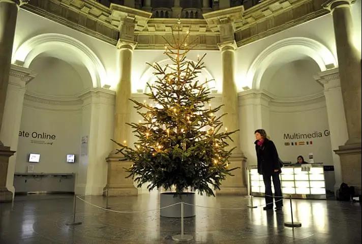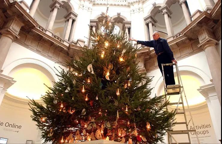 英國雕塑家 Bill Woodrow 是第一個被泰特美術館邀請設計圣誕樹的藝術家,他的設計概念是關于地球生態,圣誕樹由一個大的地球儀和用硬紙板制作的地圖模型裝飾。