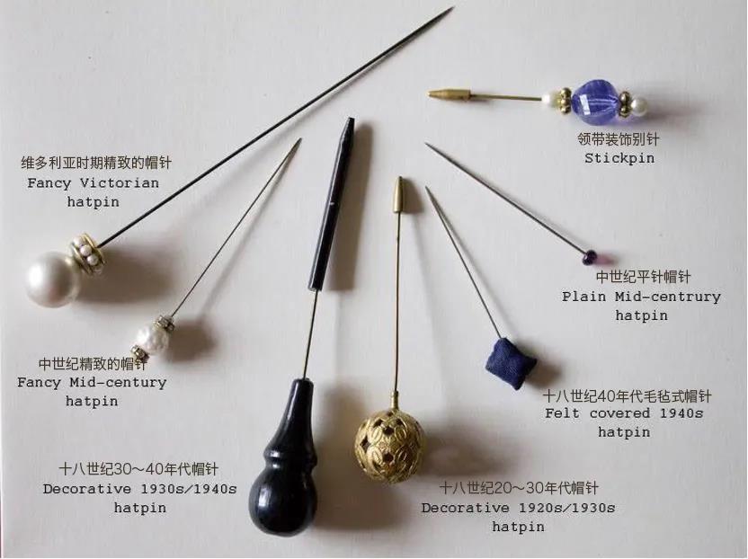 19世紀中后期,檐帽(hat)取代無邊帽(bonnet)成為最時尚的頭飾,帽針的使用開始變得普遍,它逐漸成為了衣著考究的女士們衣櫥中不可或缺的一部分。