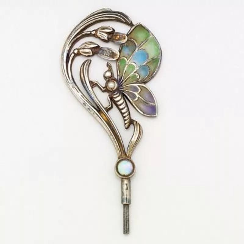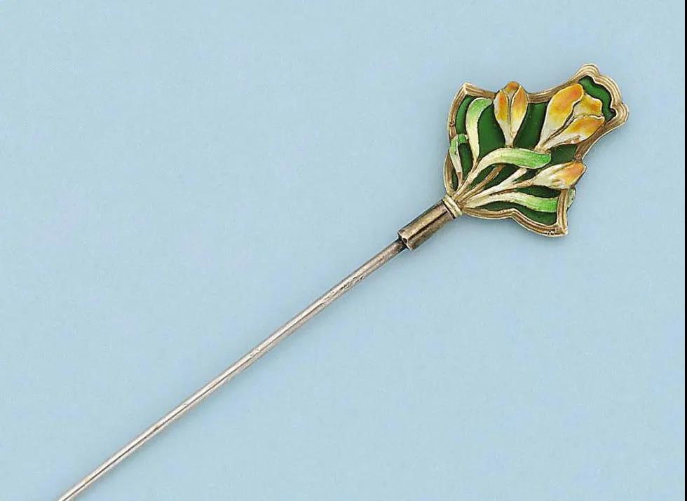 新藝術(shù)風(fēng)格的帽針設(shè)計與自然、女性氣質(zhì)等有關(guān)。這些大多是由銀制,由自由流動的線條組成,展示了精湛的工藝技巧。