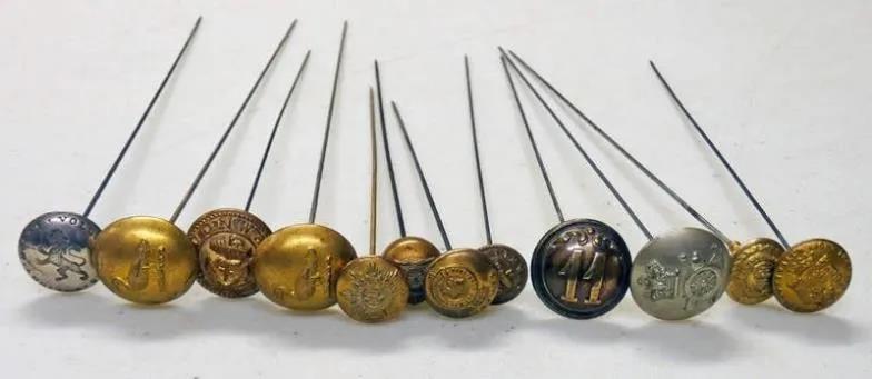 在一戰(zhàn)期間,珠寶的金屬用途有限,帽子體積變小,所以帽針尺寸也隨之變小。婦女通常用軍用紐扣做成帽針,所以它們也被稱為軍用帽針。
