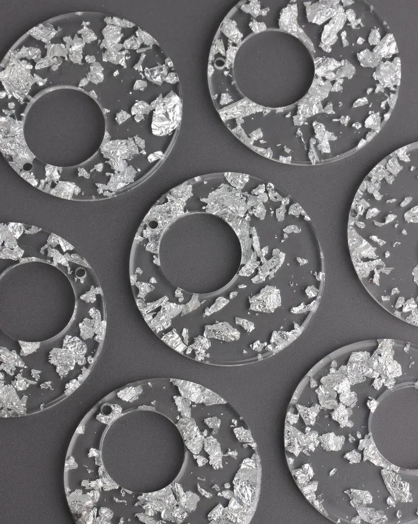 Leather, black porcelain, silver, silicone, silver foil with hidden object.