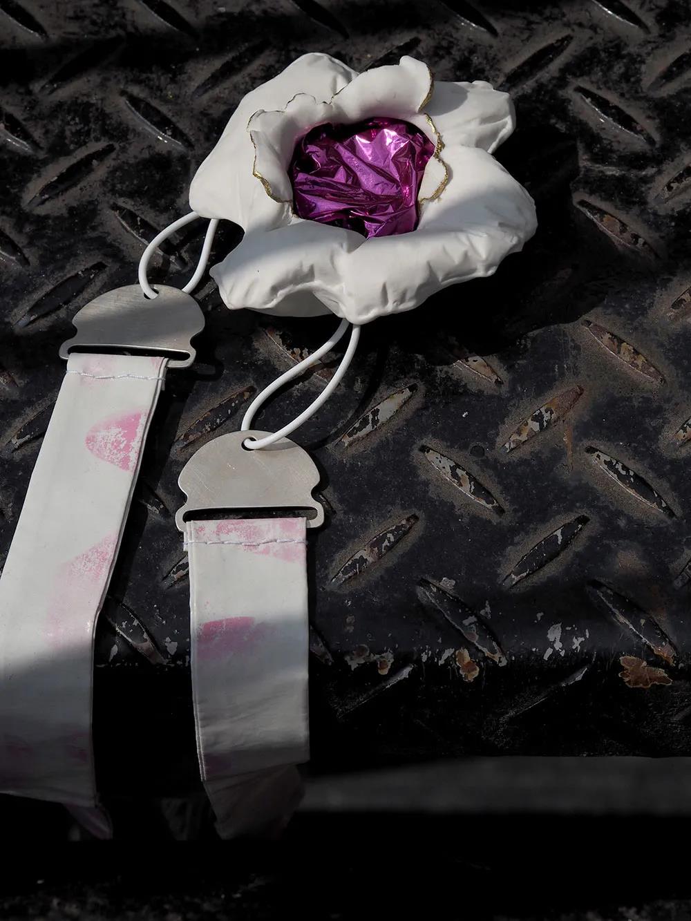 容器項鏈的想法是想誘惑佩戴者,因為形狀的暗示,使人想起膨脹的袋子。目的是讓佩戴者在與首飾產生互動前能再次思考。