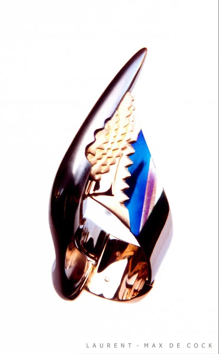 值得一提的是,在2017-2018年中,南京藝術學院曾經(jīng)兩度邀請比利時安特衛(wèi)普皇家美術學院首飾專業(yè)唯一終身教授Laurent Max-De Cock 。Laurent Max-De Cock教授在歐洲以其擅長的鈦金屬工藝享有盛名,其中不乏他在鈦箔上的研究與再創(chuàng)造。