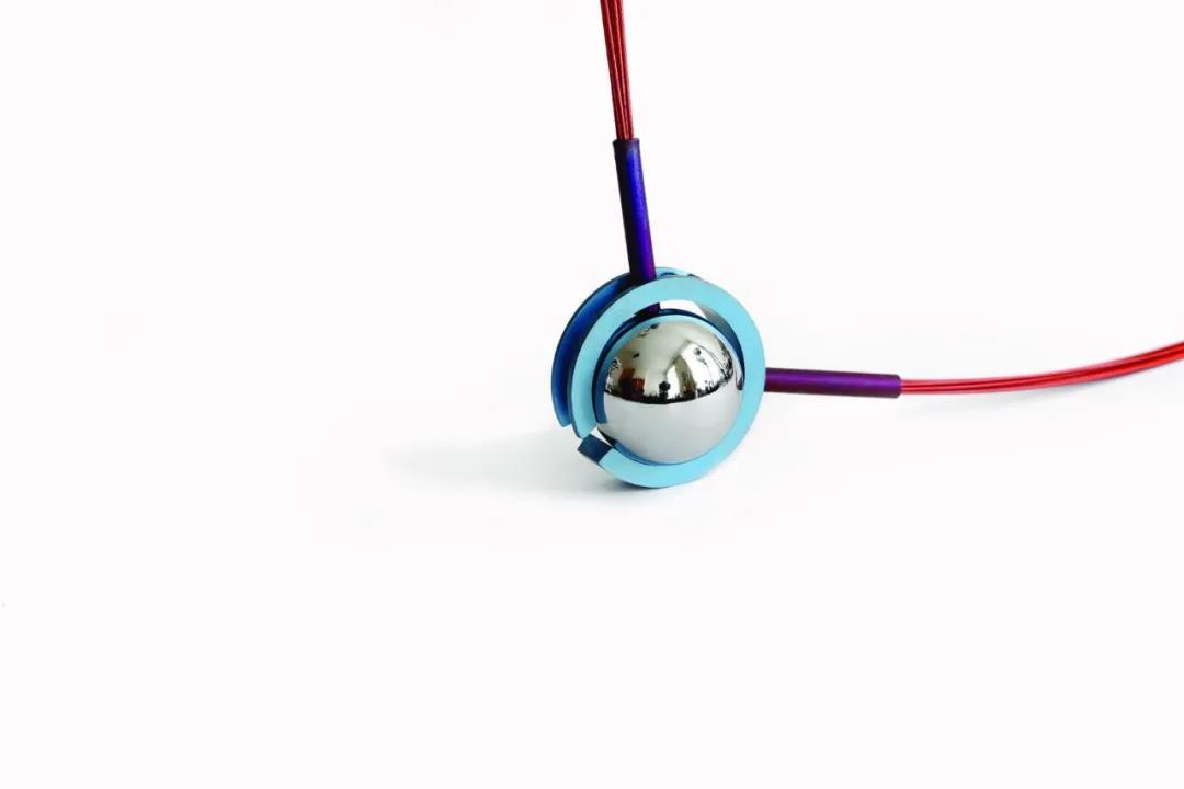 在Max教授與南京藝術學院合作的《鈦·空》國際首飾工作坊展覽中,以鈦金屬的著色和空間變化為主題,從著色實驗到鈦箔和硬質材料的組合沖壓著色,創(chuàng)作了一系列首飾作品。
