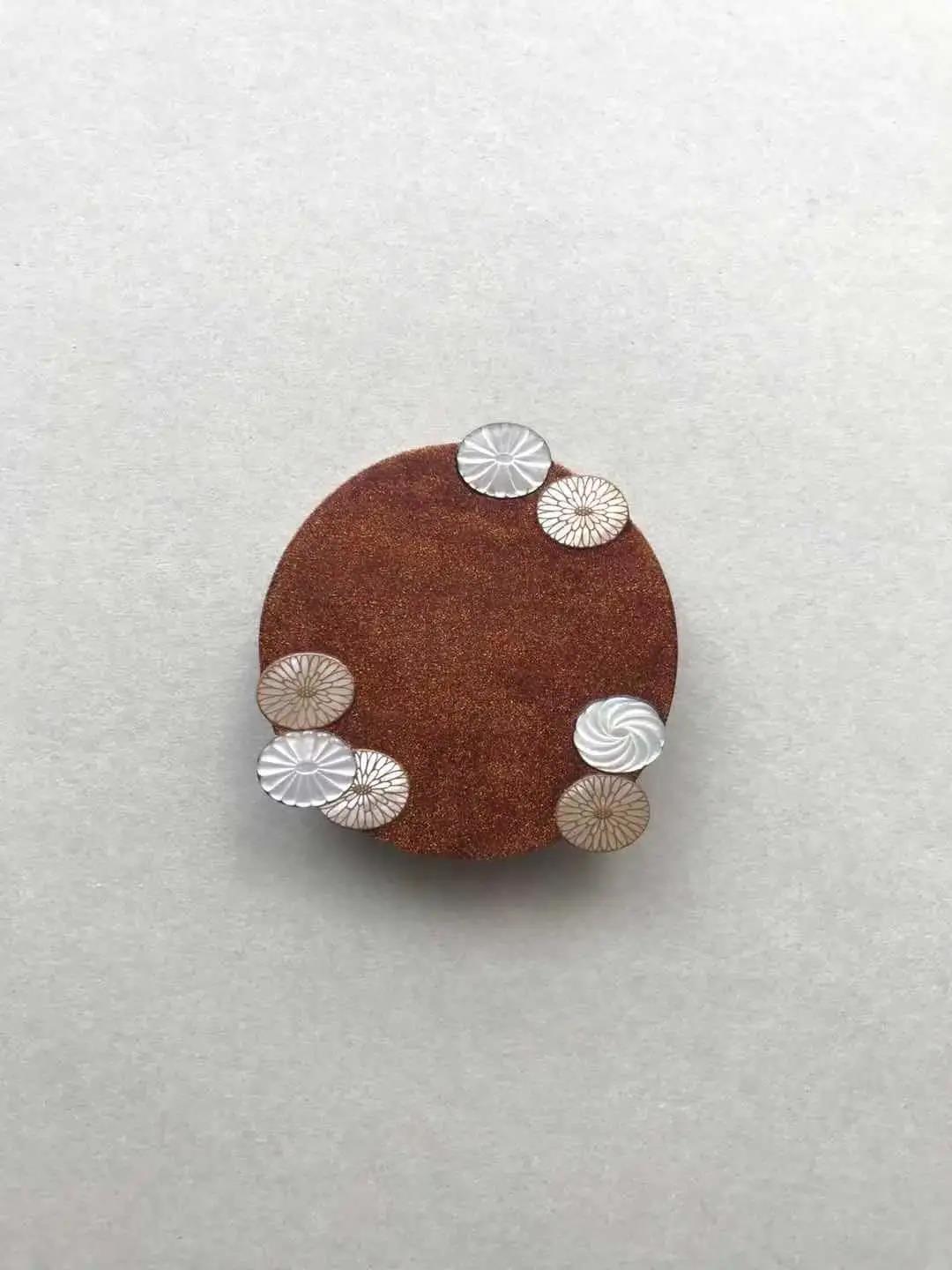 A small object always gives the viewer the pleasure of peeking into a compact world. When it comes to jewelry, the artist's imagination concentrates on a small form while, at the same time, it is expected to develop a chemistry with the wearer. Thus, it also has a more expansive nature and the way in which this condensing and expanding coexist in a piece of jewelry can uncover the maker’s idea. Saya Yamagishi’s exquisite urushi (Japanese lacquer) jewelry reveals the part of her imagination that goes beyond the piece, and it has the power to transport the wearer to a scene pictured by the artist. This is made possible by the artist’s passion for jewelry and her idea of its relationship with the wearer.