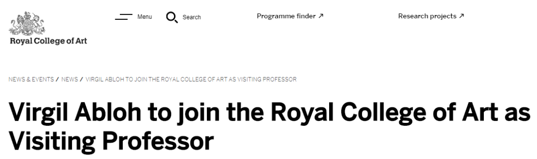 最新官宣 | Off-White創(chuàng)始人Virgil Abloh成為皇藝訪問教授