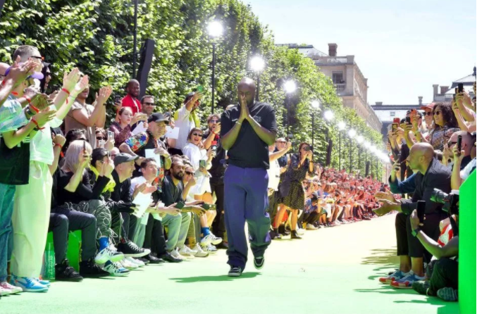 當(dāng)年6月,Virgil Abloh為L(zhǎng)V打造的第一個(gè)系列在巴黎皇家宮殿花園正式登場(chǎng)。