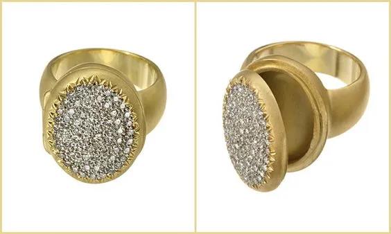盡管如此,戒指還是提供了一個隱藏的私人空間來存放紀念品、信息,甚至是一縷頭發。在中世紀,婦女不常享有這種隱私。”