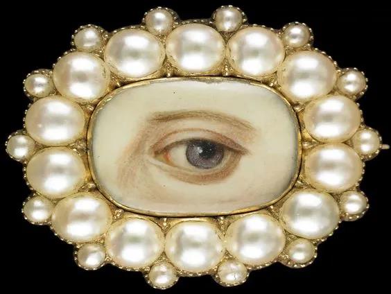 “那就是在十八世紀和十九世紀,特別是在英國,以人像為特征的珠寶。特別有趣的是這些微型畫的一個子集,只描繪眼睛。因此,大多數觀眾將無法識別被攝對象,而佩戴者卻有著直接的聯系。維多利亞女王佩戴了一件逝去丈夫的紀念品,象牙上的一個縮影,情人的象征,因為眼睛是靈魂的鏡子。其中一些眼睛胸針的背面有一綹頭發。