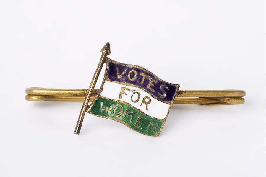 首飾也未曾缺席這場(chǎng)意義重大的歷史事件。許多人開(kāi)始佩戴包含這三種顏色的首飾,并且,出現(xiàn)了勛章形式的胸針,作為參與這次運(yùn)動(dòng)的女性“斗士”們的獎(jiǎng)勵(lì)。