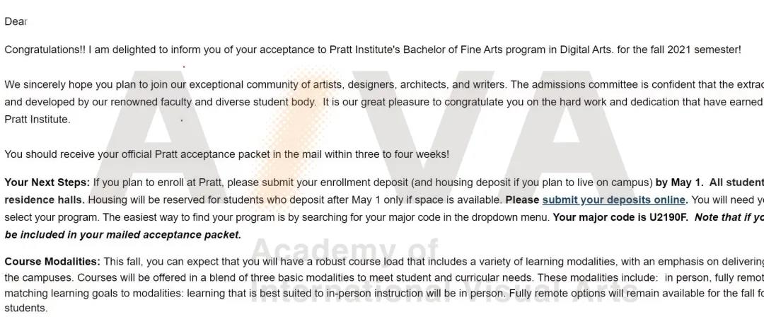 也有多位同學斬獲Pratt數字藝術專業Offer