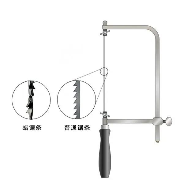 在首飾金工制作中,我們常用的鋸條基本有兩種:一種是扁扁的,單面有鋸齒的鋸條,它沒有什么特殊的名字,就統稱叫鋸條,或者因為它細得像根線,也會叫鋼絲鋸。另一種鋸條有螺旋狀鋸齒,我們稱之為蠟鋸條。這兩種鋸條沒有孰優孰劣的區分,只是在不同的情況下有不同的用法罷了。