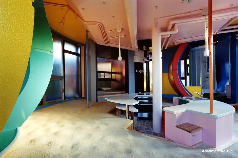 這所住宅之所以有諸多違背傳統的設計,正是源于設計師荒川修作的座右銘——
