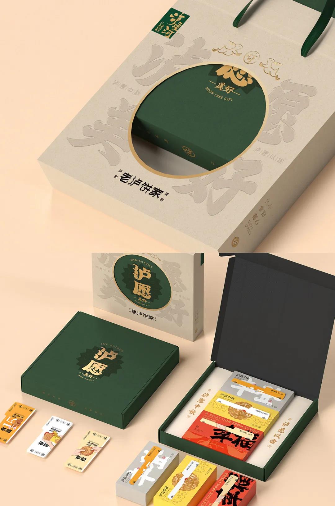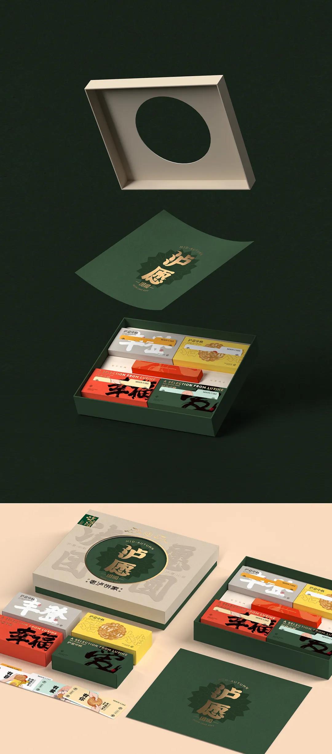 瀘溪河2021年推出的新款月餅禮盒,由博獅品牌設計進行視覺策略與視覺設計。包裝沿用了瀘溪河VI的標準色——墨綠色。