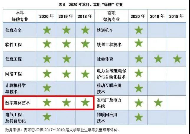 在權(quán)威機(jī)構(gòu)麥可思發(fā)布的《2020年中國大學(xué)生就業(yè)報(bào)告》中,數(shù)字媒體藝術(shù)專業(yè)連續(xù)4年獲得綠牌。