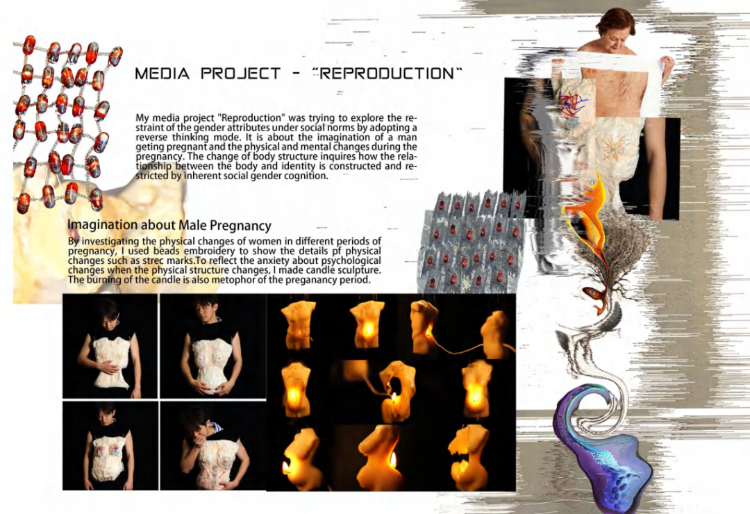 我作品集中的第二個項目《解構社會性別下的身體》,靈感來源于之前畢業設計做的個人影像與雕塑結合的作品《繁衍》。采用了反向思維模式,針對社會規范下的性別屬性對人的束縛性進行討論與思考。在這個項目中,我延伸探討普遍固有印象對人類性別認知的界定以及個人對性別的界定的關系和發展,尋找社會規范下隱藏的身體屬性。