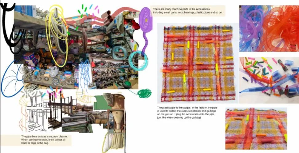 其實對我來說,做research和拼貼是最難的。做sample以及材料的選擇和運用我還是比較在行的。但拼貼因為之前沒做過,比較生疏,還是葉老師一步一步教我的。葉老師真的教了我很多,還教我怎么用Procreate,給我示范畫草圖,做拼貼,立裁,打版,做樣衣,帶著我捋思路等等等等,就差握著我的手幫我做了!啊哈哈哈。面試前葉老師也幫我改了好多次稿子,有個七八九個版本了,特別耐心。