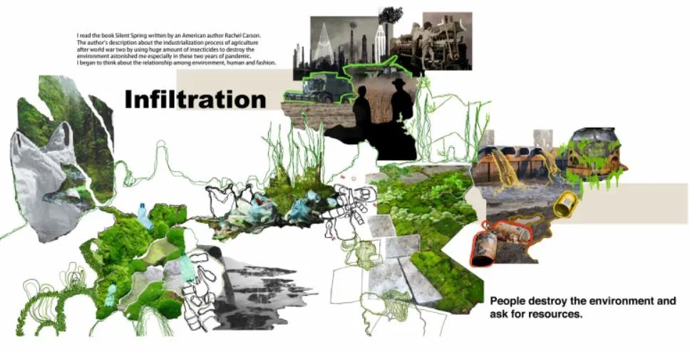 我最喜歡的項目是Infiltration滲透。這個項目主要反映的是人類造成的污染,一步步滲透進森林,滲透進土地和植物的一個過程。