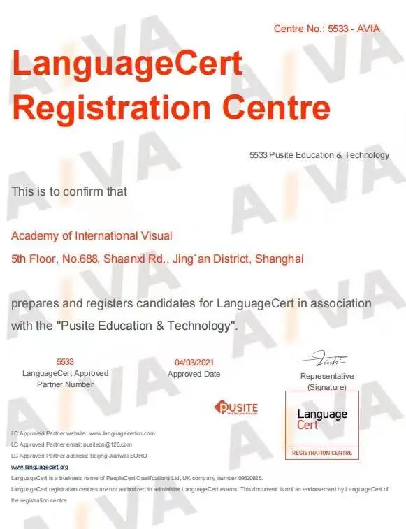 AIVA通過審核成為LanguageCert(朗思)考點。考生可在AIVA上海校區報名線下考試,減少報名周期、更快拿到分數,獲得進入理想院校的敲門磚。