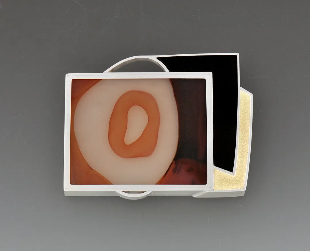 Sterling silver, 18k- gold, agate, and black paper Micarta