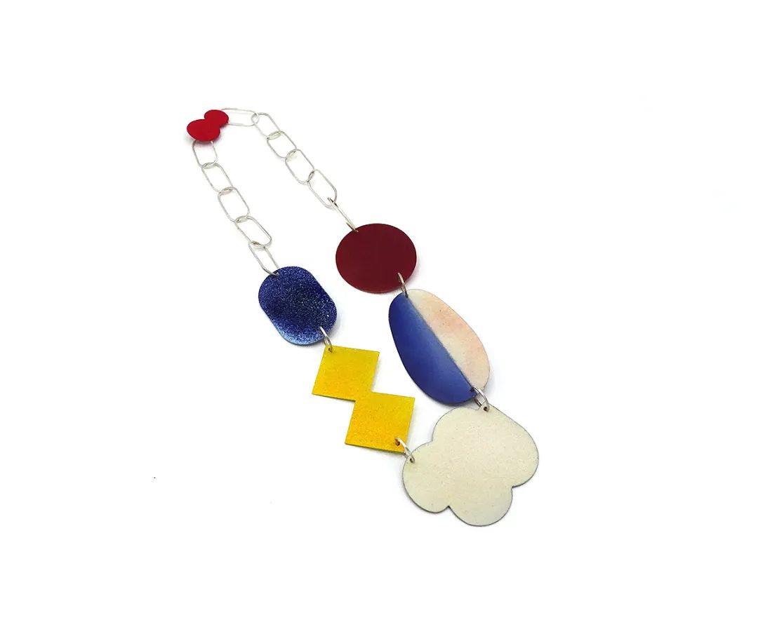 通過添加簡單的繩索或別針,Yumiko Matsunaga 將大理石作品變成珍貴的項鏈或胸針。展覽的主題是真實的顏色,源于Yumiko Matsunaga 對色彩與情緒之間聯系的探索,或者說感受的色彩與人類的內在心理之間的聯系。她說:“情緒包含現在,但通常基于過去的各種經歷。琺瑯技術的色彩應用讓我想起了這一點,這種技術是通過各種層次的疊加而產生的……我想創造首飾和物品,通過他們的色彩感喚起觀眾和佩戴者的記憶和情感?!?/p>